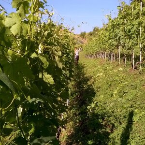 In the period prior to the harvest also you have to remove the leaves in bunches strap so that the wind keeps them healthy and can sunbathe. In very hot years this work we try to ritardalo as possible or even not to do so to preserve together the fragrance and freshness of the wine.