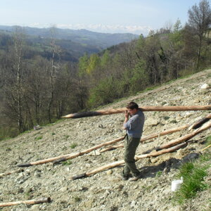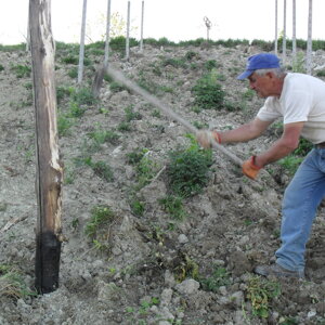 This is the time to plant new vineyards, to replace existing ones in the failed areas and hoeing the ground between a screw and another. In these days it is also necessary to cut the grass and to control at night, with the use of a lamp, if caterpillars are eating new shoots. We install also the "rete antigrandine" that is an anti hail coverage.